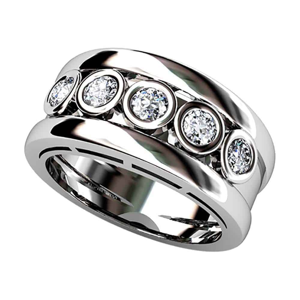 Anillo tipo alianza de diamantes de oro amarillo, oro blanco u oro rosa con 5 diamantes talla brillante.