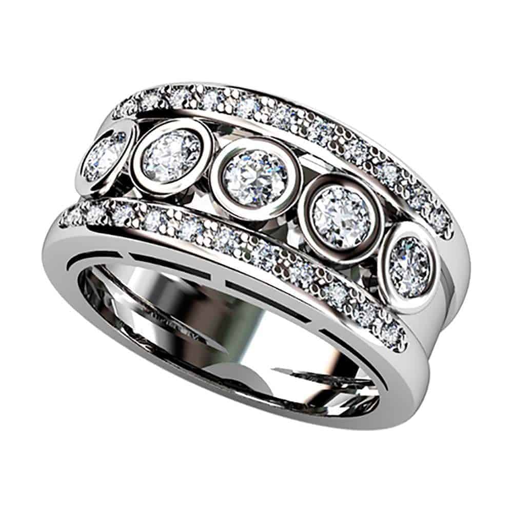Anillo tipo alianza de diamantes de oro amarillo, oro blanco u oro rosa con diamantes talla brillante.